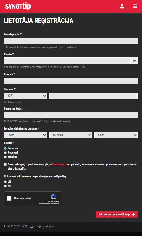 | Klientu atbalsts | info@synottip.lv, tālr. nav norādīts |